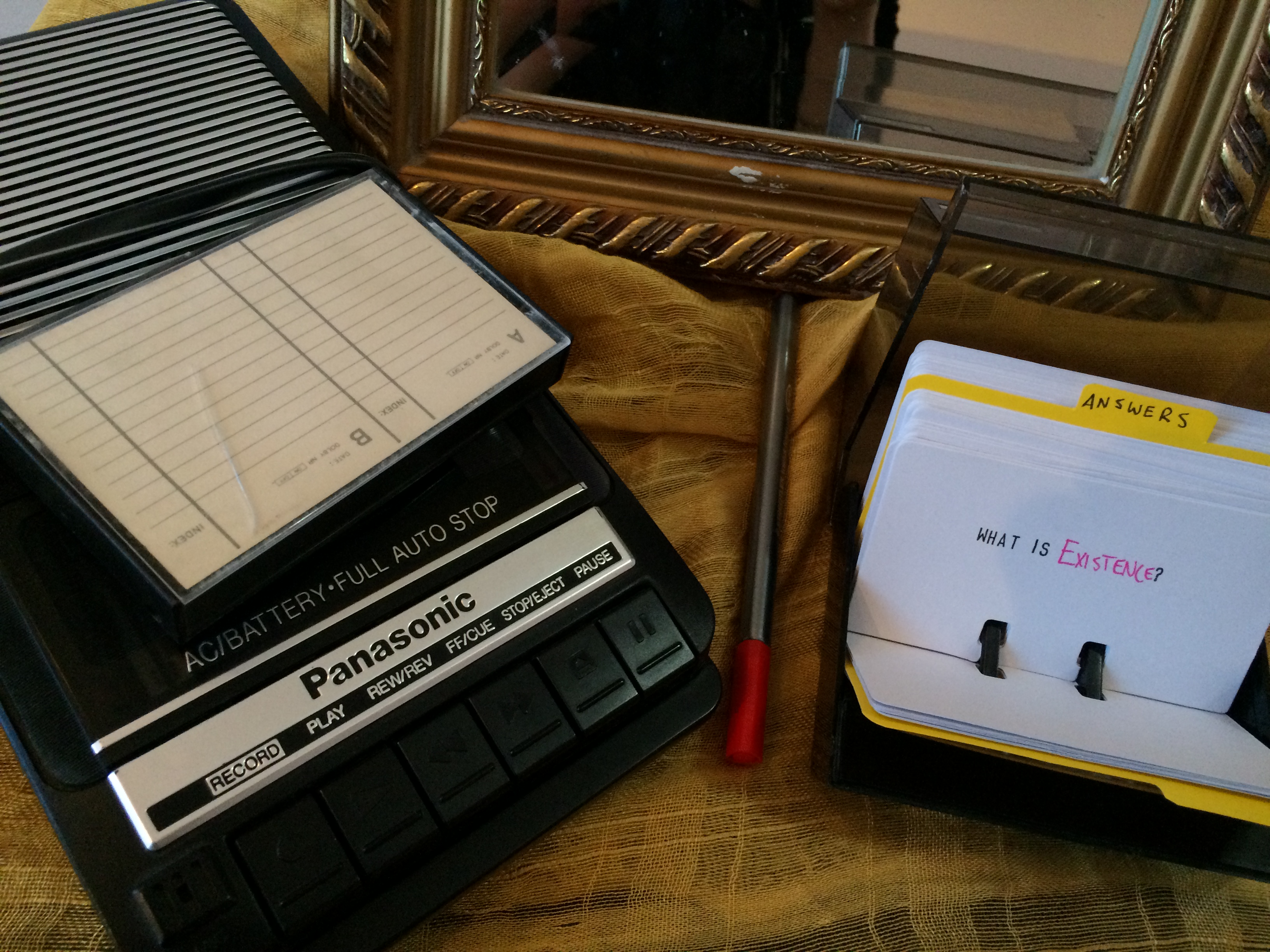Ask-A-Philosopher — Cardboard, Plastic, Wood, Acrylic, Found and Altered Objects. Installation. October 2015. “Philosophy in the Expanded Field” (group show) at Philopolis. Guelph. Curator: Jeannette Hicks.